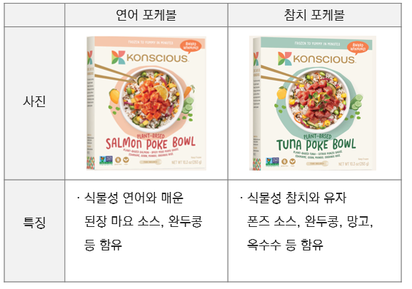· 곤약·완두콩·토마토·당근·쌀 등 식물성 재료로 참치·연어·게 등 대체 해산물 제품 제조