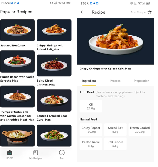 ㅇ 레시피대로 자동 온도조절·조미료 투하, 레시피는 앱에서 원격 관리되어 동일 품질 제공