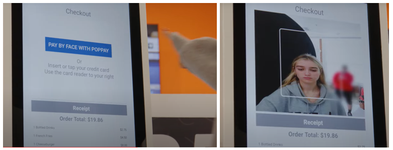 · 디지털 키오스크에서 고객이 PopID 계정에 로그인해 얼굴을 인식하여 카드 없이도 자동 계산